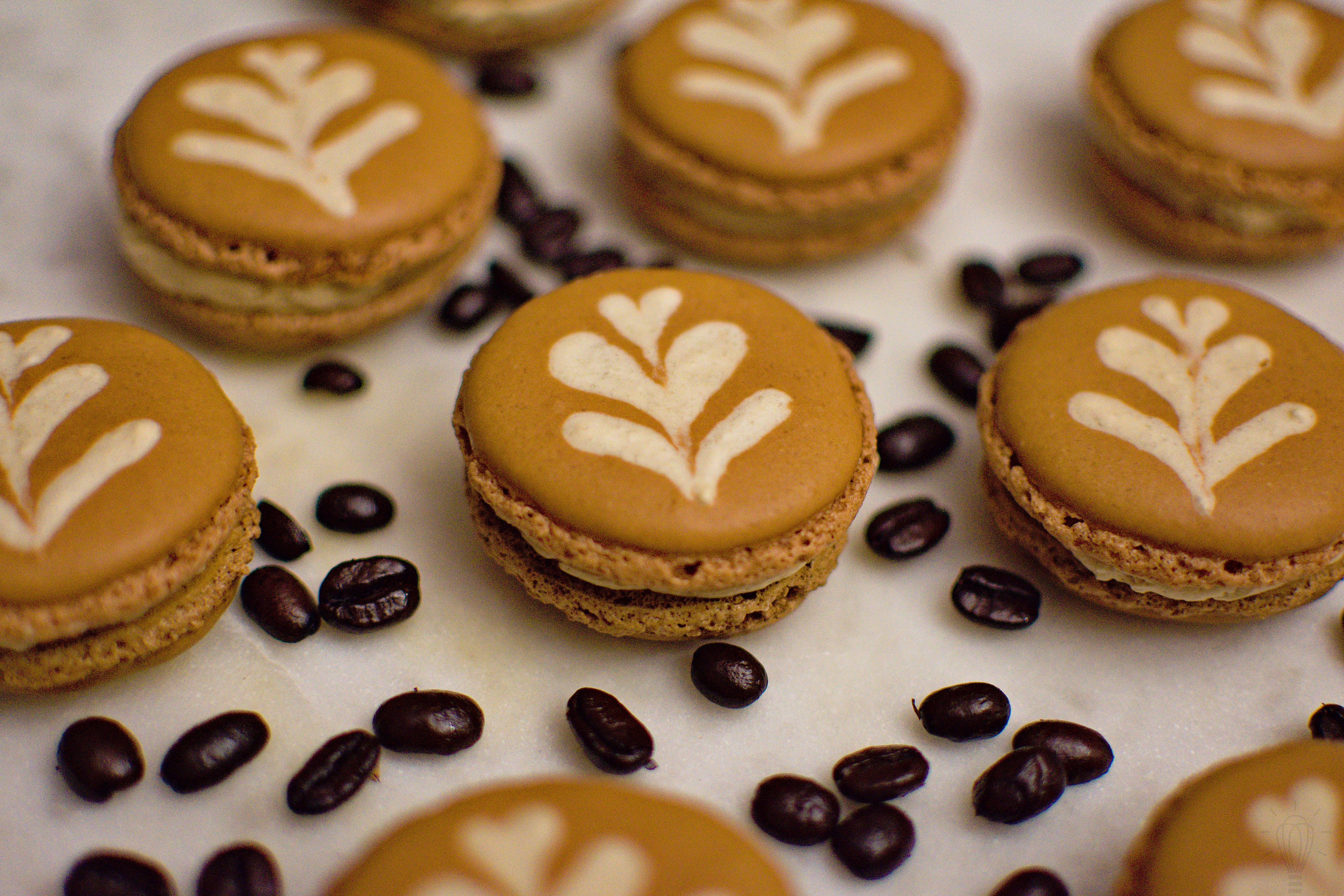 Deliciously smooth espresso swiss meringue buttercream sandwiched between two-tone vanilla macarons. Perfect for a mid-afternoon pick me up, or when you want your coffee with a side of coffee.