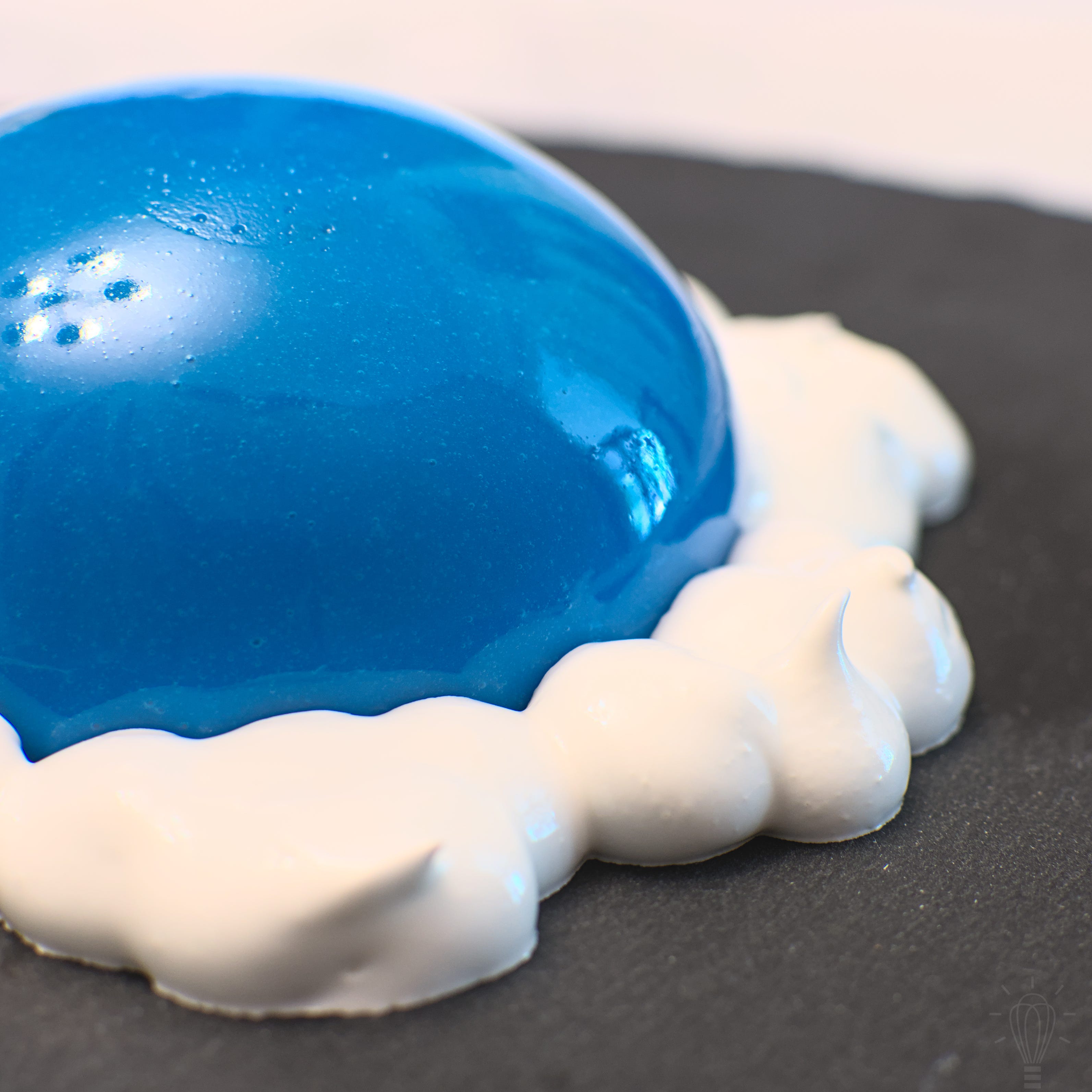 Place one frozen curd dome upside down into the center of each of the mousse-filled molds.